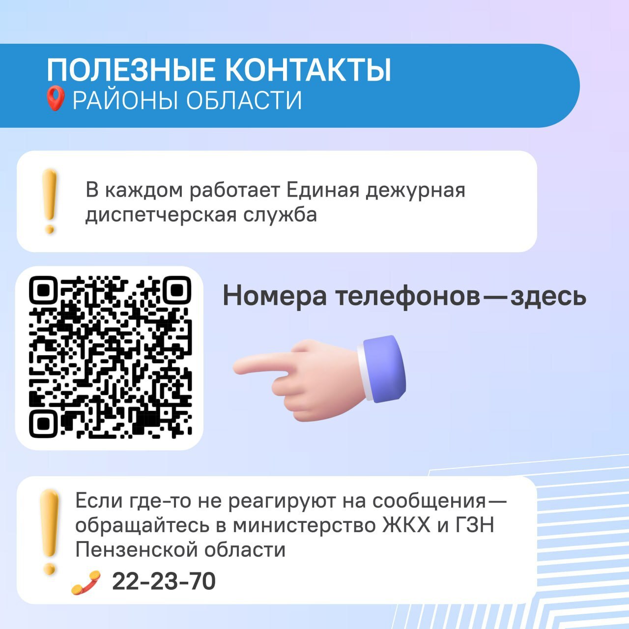 В каждом районе области функционирует Единая дежурная диспетчерская служба (ЕДДС). Ознакомиться с номерами телефонов можно здесь: https://telegra.ph/Edinaya-dezhurnaya-dispetcherskaya-sluzhba-12-08