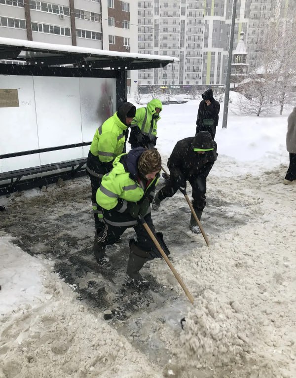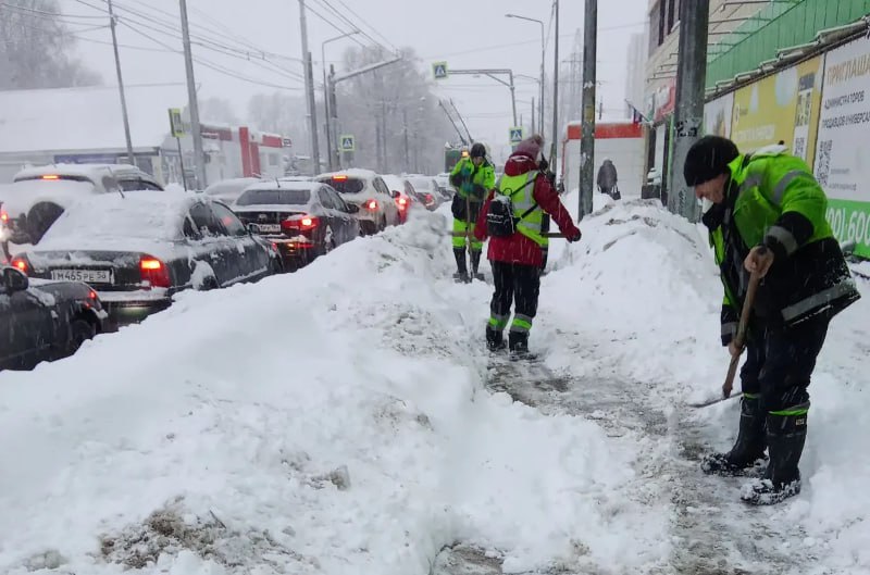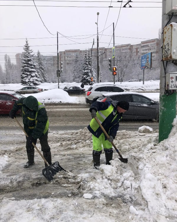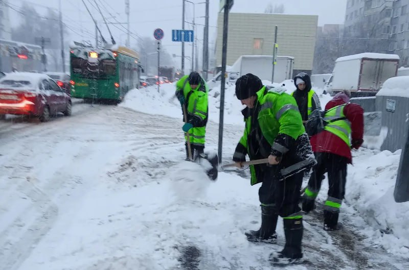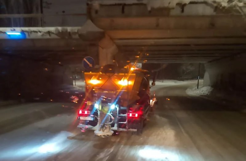 В первую очередь идет уборка мостов, путероводов, спусков и подъемов, центральных автомагистралей для обеспечения работы общественного транспорта.