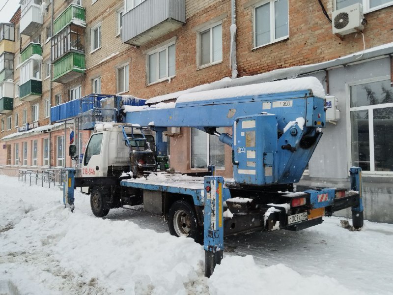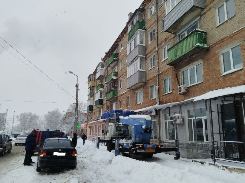 В настоящее время к дому на улице Ленинградской, с которого на пензячку упал кусок льда, приехала вышка. Здание очищают от наледи.