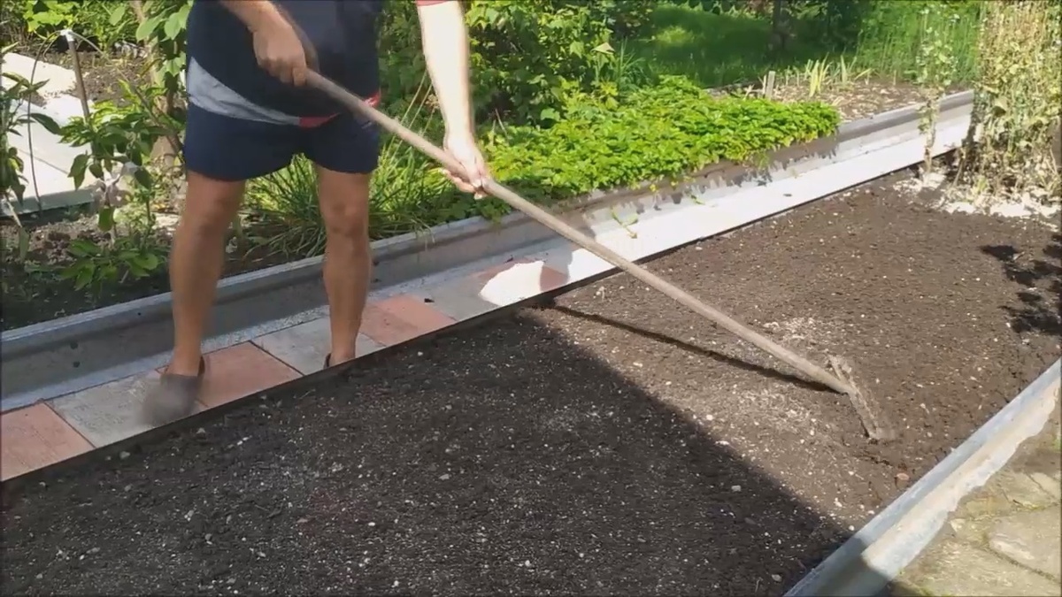 - Перекапывание грядки для создания однородной структуры почвы.