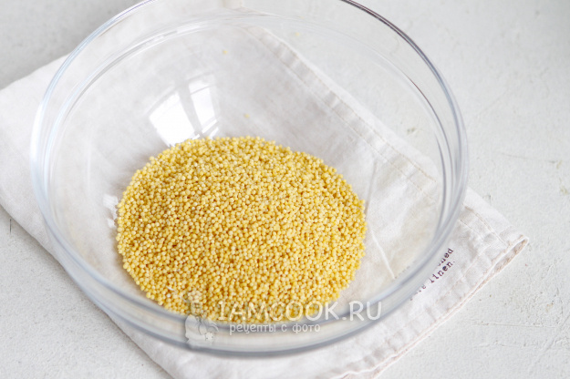 Начнем с подготовки основных ингредиентов. Для ароматной пшенной каши потребуется 150 г пшена, которое нужно тщательно промыть в прохладной воде. Поместите его в миску, заливайте водой и слегка перемешивайте руками, сливая воду до тех пор, пока она не станет прозрачной — это критически важно для исключения горечи в готовом блюде.