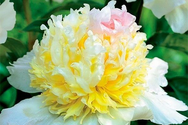 Это молочноцветковый травянистый пион, идеально подходящий для высадки на клумбах, особенно в сочетании с контрастными цветами. Его цветы прекрасно сохраняются в срезке и долго радуют глаз в букете.