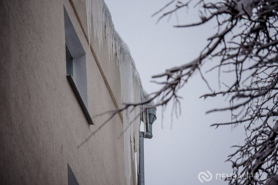 На проспекте Победы в Пензе обрушившаяся с крыши глыба льда повредила надземный трубопровод теплоснабжения