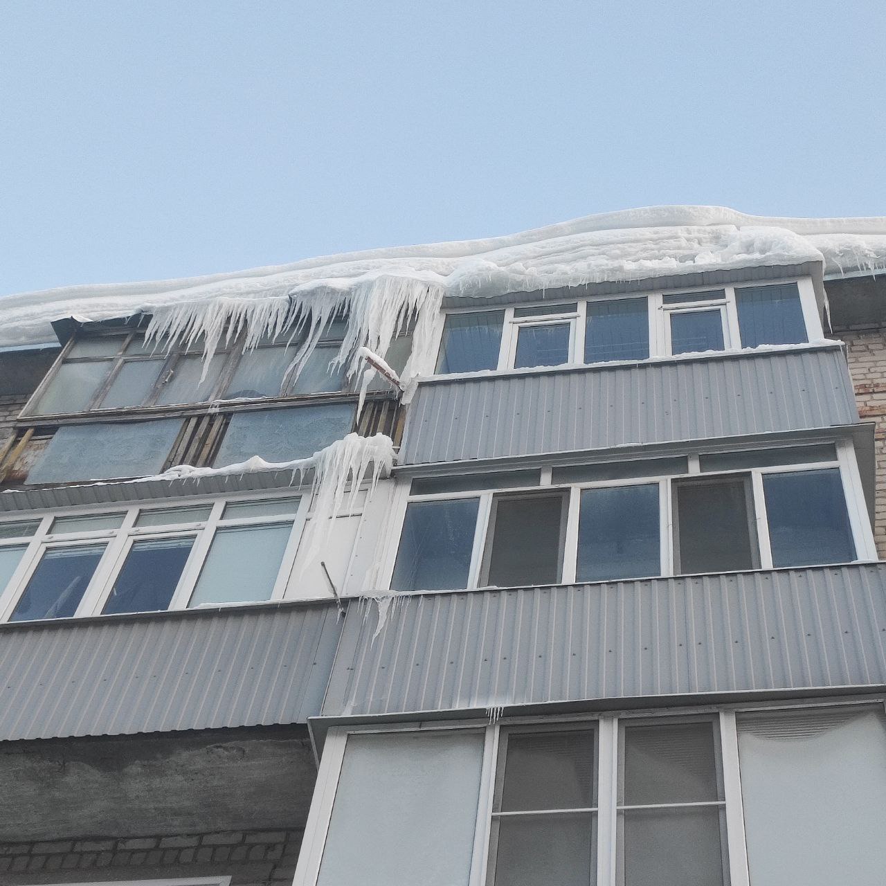 Наледь как на балконах, так и свисает с крыш. Конкретно на фото - дом на Карпинского, 42, - уточнила пензячка.