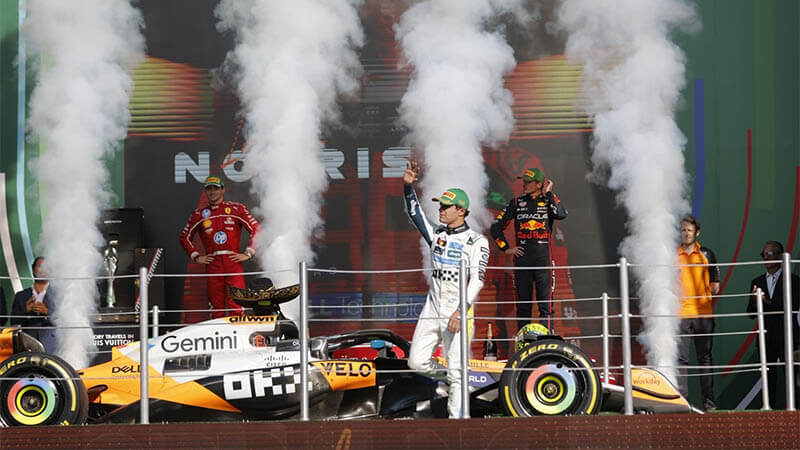 «Не знаю, что еще сказать — это была невероятная гонка!», — поделился Норрис после своего триумфа, несмотря на осуждающие крики на подиуме. Он подчеркнул, что все прошло как по маслу. «Отличный старт и расчет в первом повороте позволили мне избежать сложностей, что дало шанс вернуться к лидерству уже с первых кругов», — добавил он.