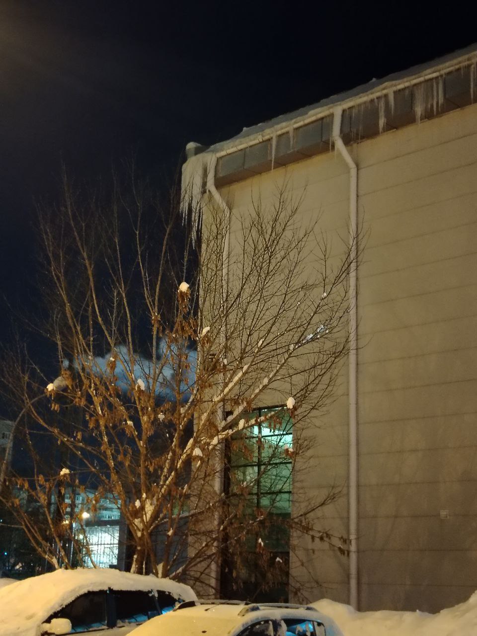 Вот такая красавица висит на крыше спортивного комплекса Буртасы. Недавно в городе уже случилась трагедия с участием наледи. Здесь детский комлекс, администрация должна же как-то отреагировать?! - пишет наша читательница.