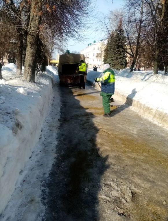 Основное внимание бригад ручного труда МБУ «Пензавтодор» уделяется посыпанию противогололедными средствами и скалыванию льда на тротуарах, подходах к пешеходным переходам, остановочных площадках, лестничных маршах и на территориях общественных пространств.