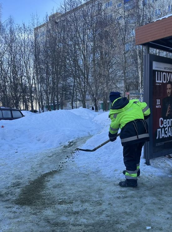 В связи с резкими перепадами температур и образованием наледи основной упор работы коммунальных служб сосредоточен на противогололедной обработке подведомственных территорий.