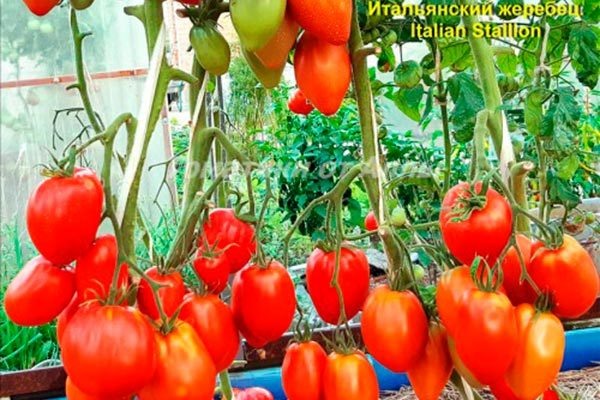 Итальянский жеребец славится своим дружным и длительным плодоношением. Отмечается, что томаты созревают в среднем через 90-100 дней после появления всходов, что делает сорт среднеранним.