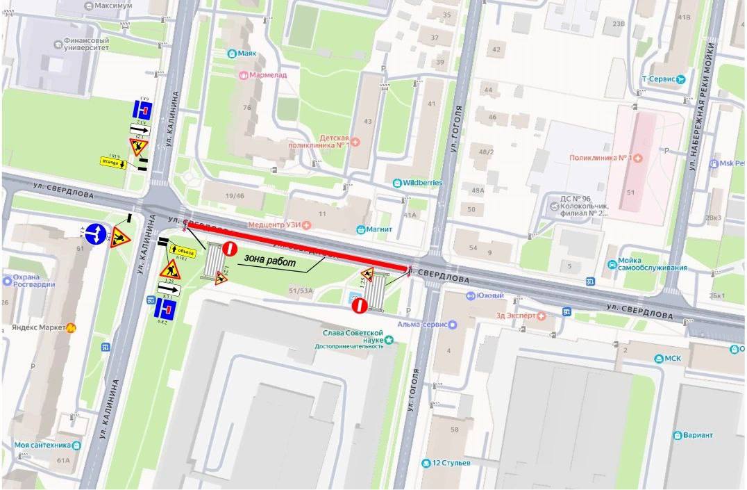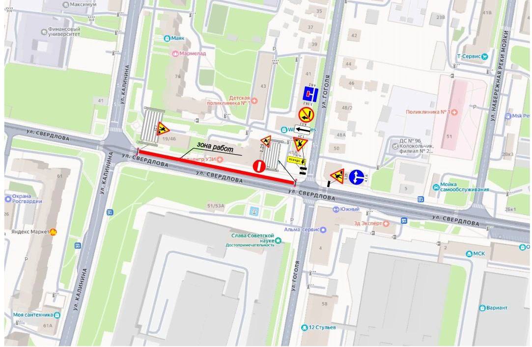 С 22:00 21 февраля до 01:30 22 февраля будет перекрыт участок от улицы Калинина до улицы Гоголя по направлению в Терновку.
