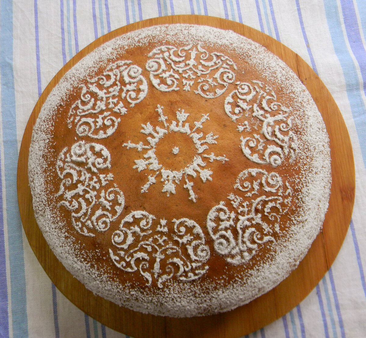 По завершении выпекания пирог аккуратно извлекается из формы и ставится на решетку для остывания. По желанию можно украсить его сахарной пудрой или глазурью.