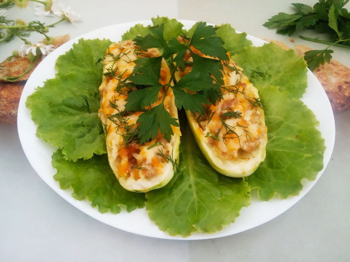 Фаршированные кабачки отлично подаются со сметаной или соусом и посыпаны свежей зеленью, сообщает источник.