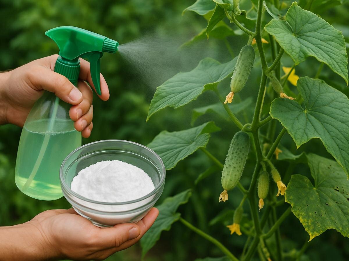 Хотя огурцы предпочитают тепло, повышенная влажность может стать причиной болезней. Регулярное опрыскивание содой каждые 7-10 дней помогает поддерживать растения в отличной форме и сосредоточиться на получении хрустящих плодов.