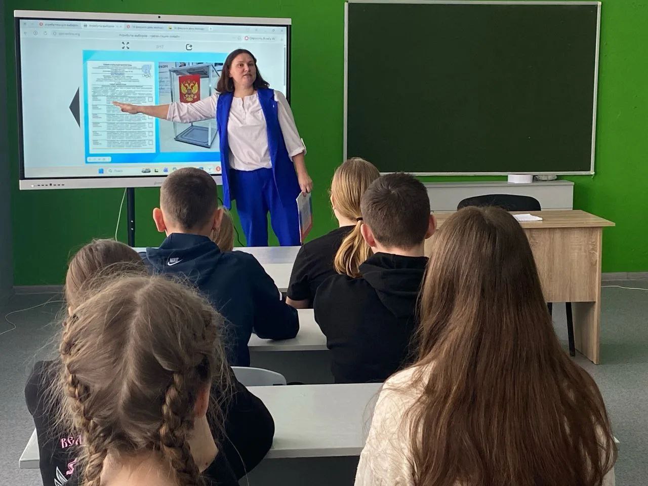 Школьники узнали об основах избирательного права, познакомились с законодательством РФ о выборах, а также подробно разобрали порядок голосования и права избирателей.