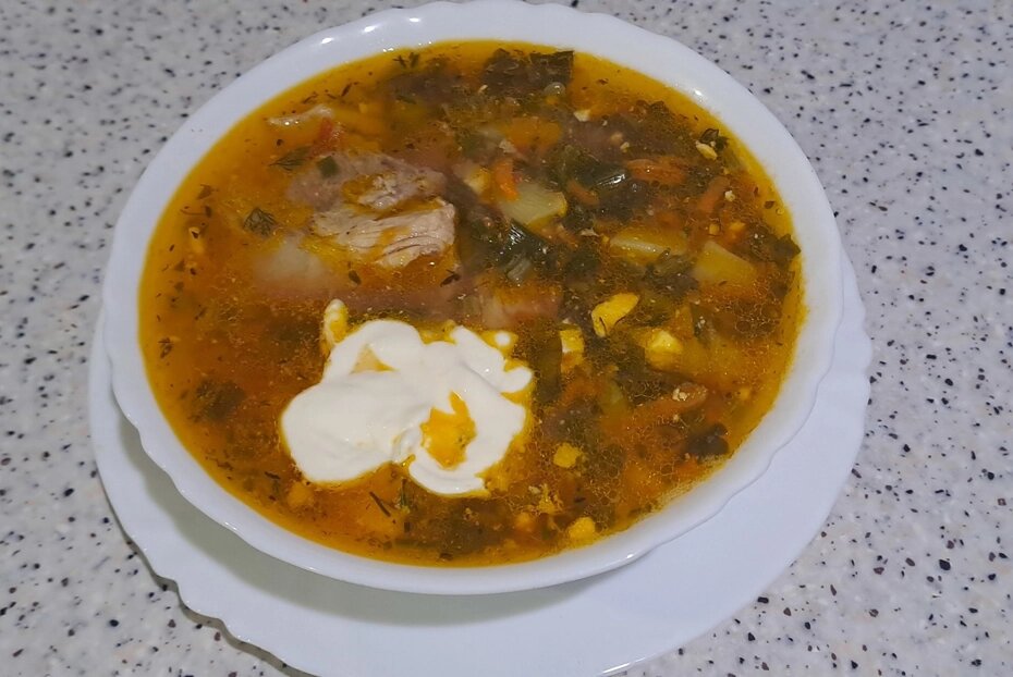Зеленый борщ — это не просто блюдо, а настоящее кулинарное искусство! Готовится он легко, а результат неизменно радует. Чтобы разнообразить вкус, томатный сок можно заменить томатной пастой или натертыми свежими помидорами.