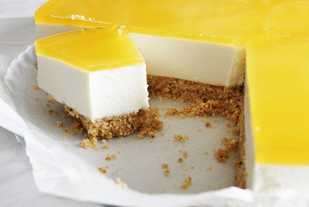 • Извлеките корж из холодильника и аккуратно вылейте сверху творожную массу. Поставьте десерт в холодильник, чтобы он немного загустел.