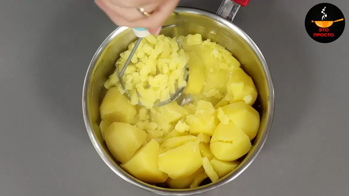 Первым делом необходимо отварить очищенный картофель в подсоленной воде. После того как он станет мягким, слить воду и размять до состояния пюре, добавив немного сливочного масла для нежного вкуса.