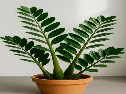 - Замиокулькас: Растение, устойчивое к засухе и недостатку света. Его листья сохраняют воду, что обеспечивает жизнеспособность даже при минимальном освещении.