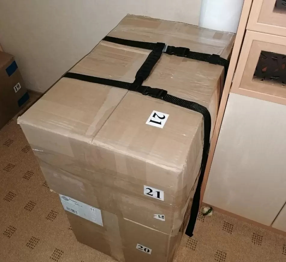 - скотчем и стрейч-пленкой для надежной упаковки;