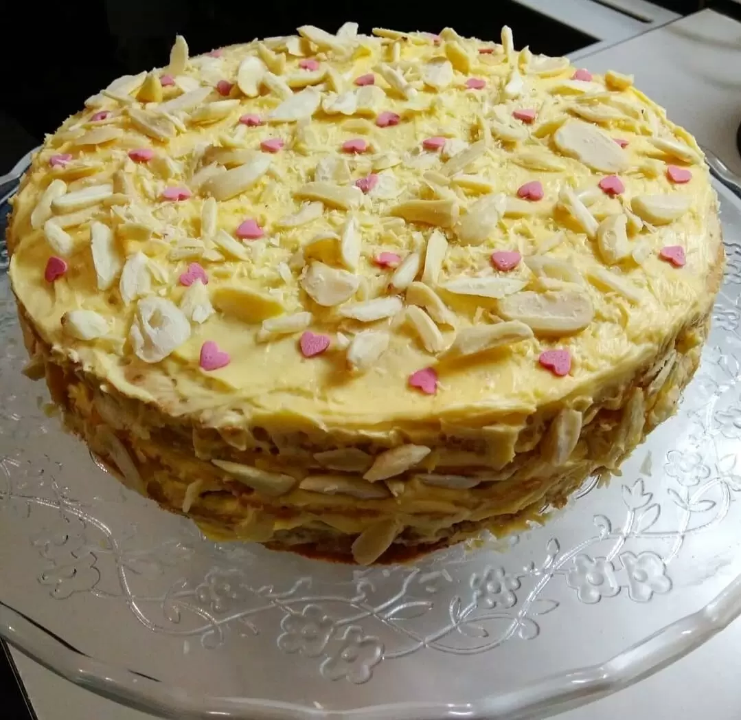 Когда коржи остынут, их аккуратно смазывают заварным кремом, накладывая один на другой. Торт можно украсить миндальными лепестками или по своему желанию. Этот десерт не требует дальнейшей пропитки, но перед подачей его рекомендуется хорошенько охладить. Такой миндальный торт будет шикарным угощением на любом празднике и станет настоящей изюминкой для любителей сладкого.