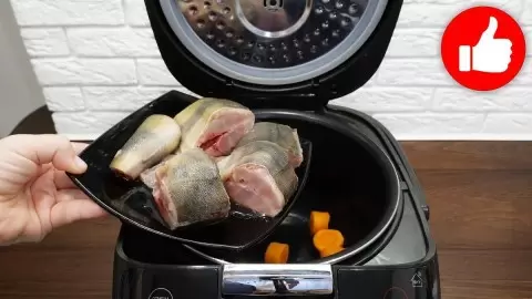 Приготовление начинается с подготовки ингредиентов. Морковь нужно нарезать крупными кусками, лук разрезать пополам, а рыбу — на порционные фрагменты. Затем все компоненты помещаются в чашу мультиварки.