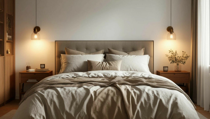 Холодный яркий свет может негативно сказаться на создании атмосферы расслабления. Рекомендуется заменить обычные лампочки на теплые светодиоды и добавить бра или торшер с мягким освещением. Также стоит обратить внимание на растения: некоторые из них, например, лилии и жасмин, могут мешать крепкому сну своим сильным ароматом. Лучше выбрать зелёных друзей с легким нейтральным запахом, которые не нарушат ваш покой.